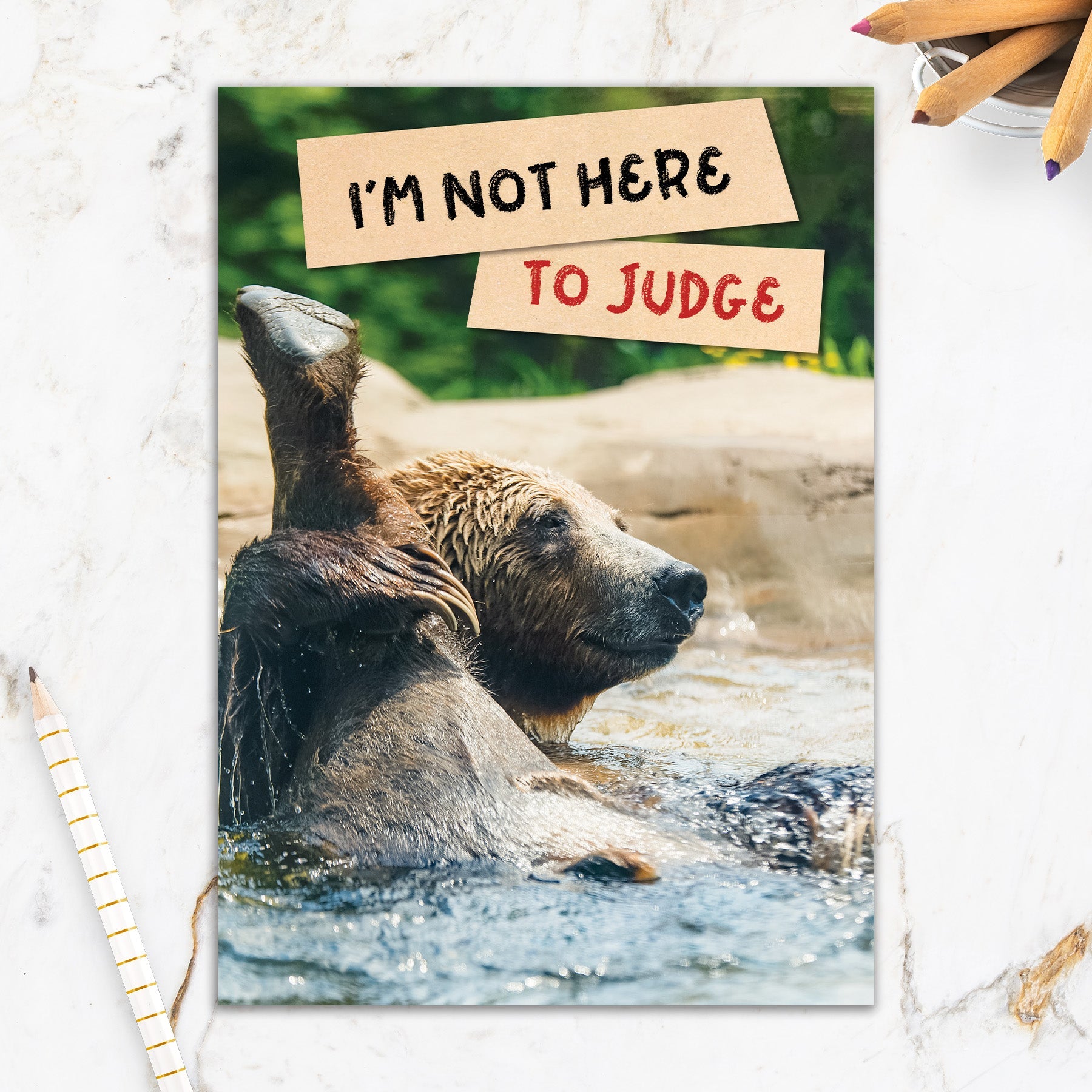 This greeting card measures 5" x 7" and comes with a coordinating colorful envelope.