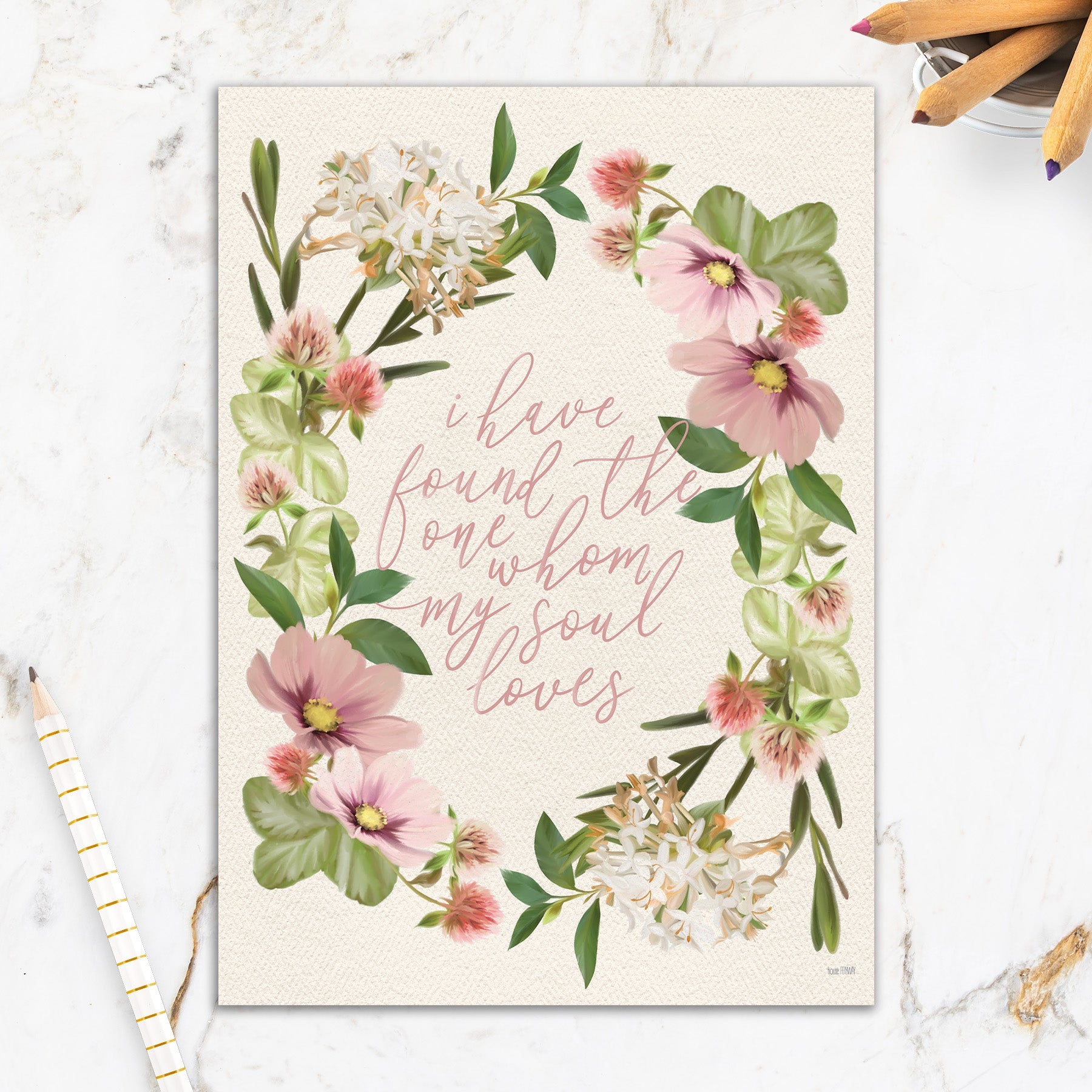 This greeting card measures 5" x 7" and comes with a coordinating colorful envelope.