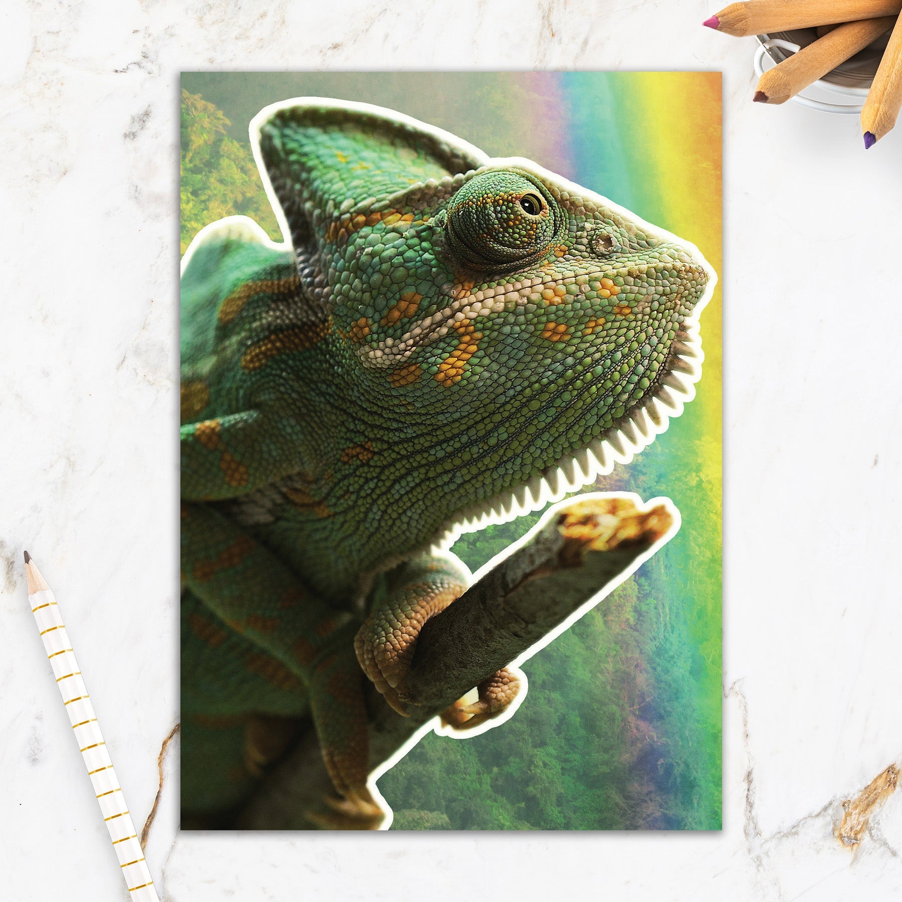 This greeting card measures 5" x 7" and comes with a coordinating colorful envelope.