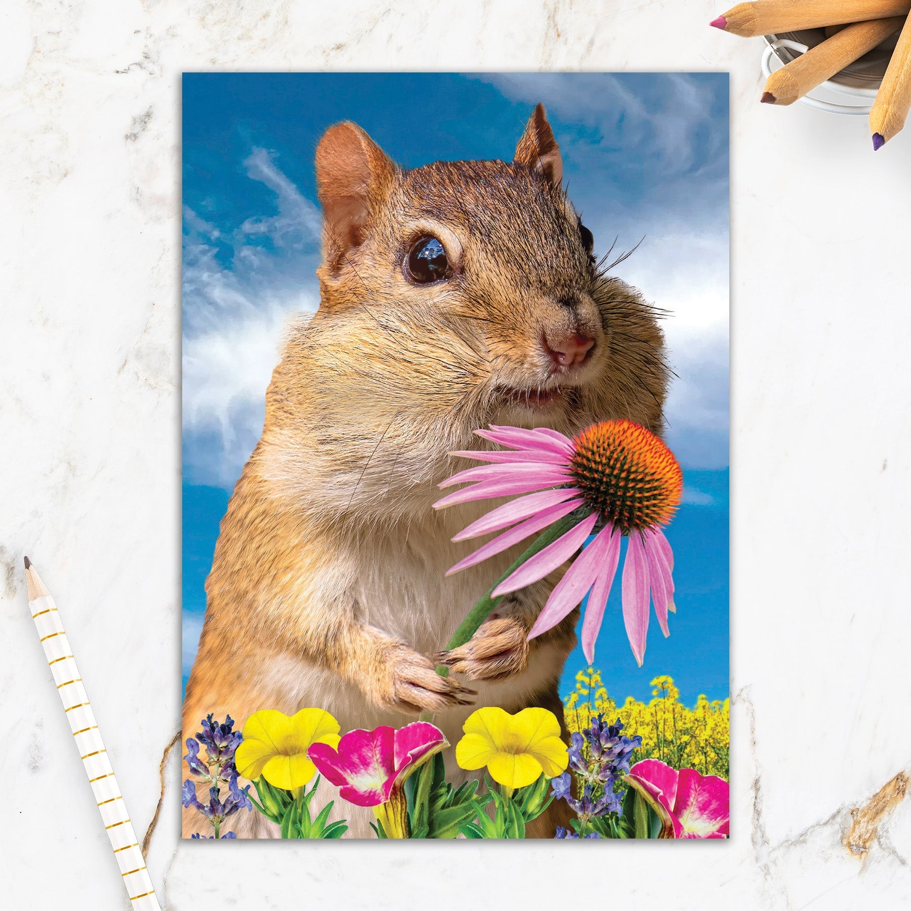 This greeting card measures 5" x 7" and comes with a coordinating colorful envelope.