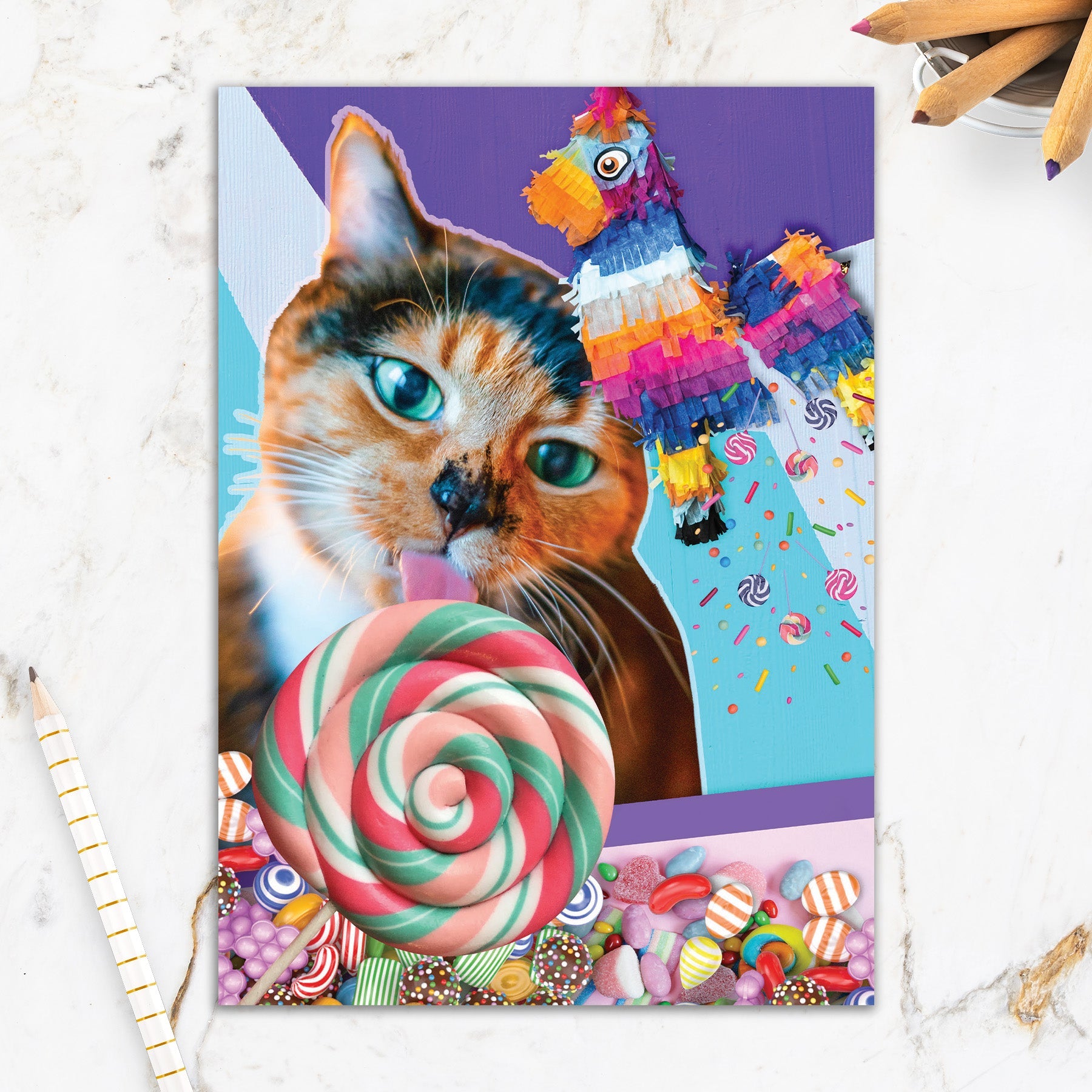 This greeting card measures 5" x 7" and comes with a coordinating colorful envelope.