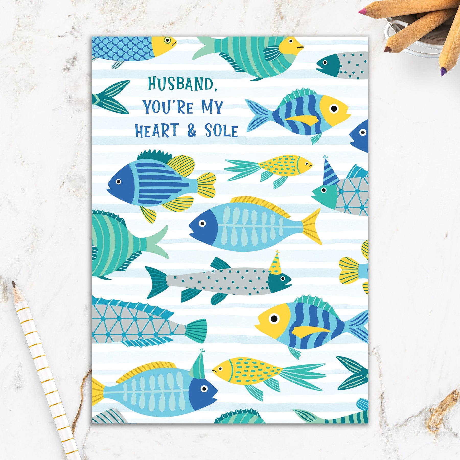 This greeting card measures 5" x 7" and comes with a coordinating colorful envelope.