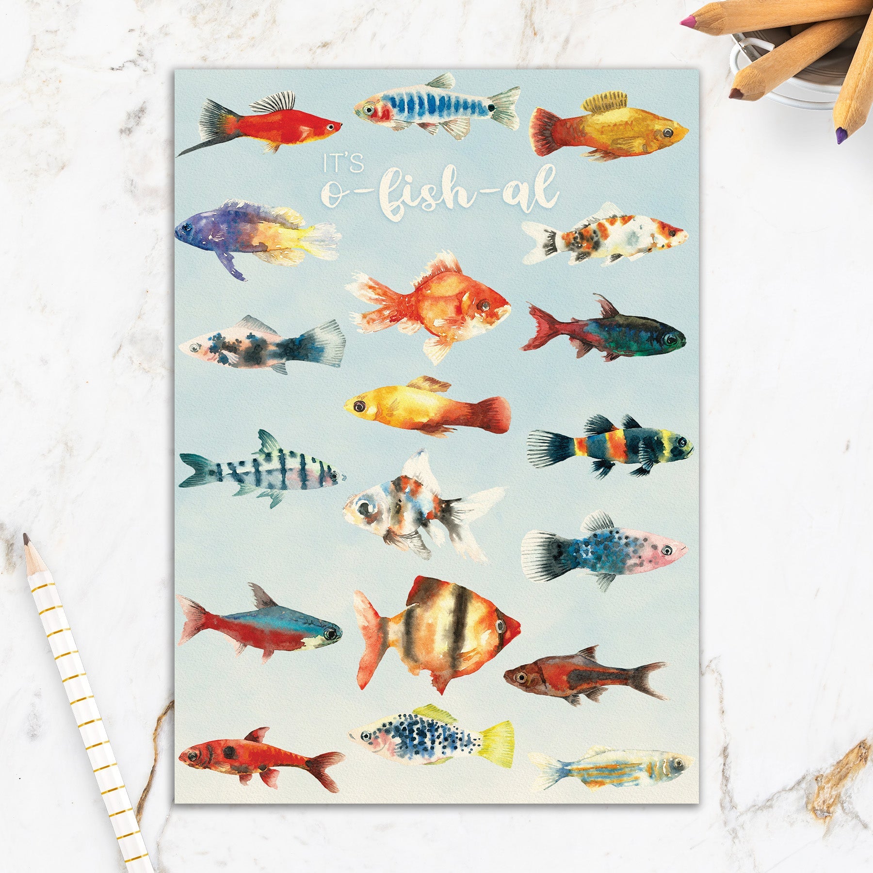 This greeting card measures 5" x 7" and comes with a coordinating colorful envelope.