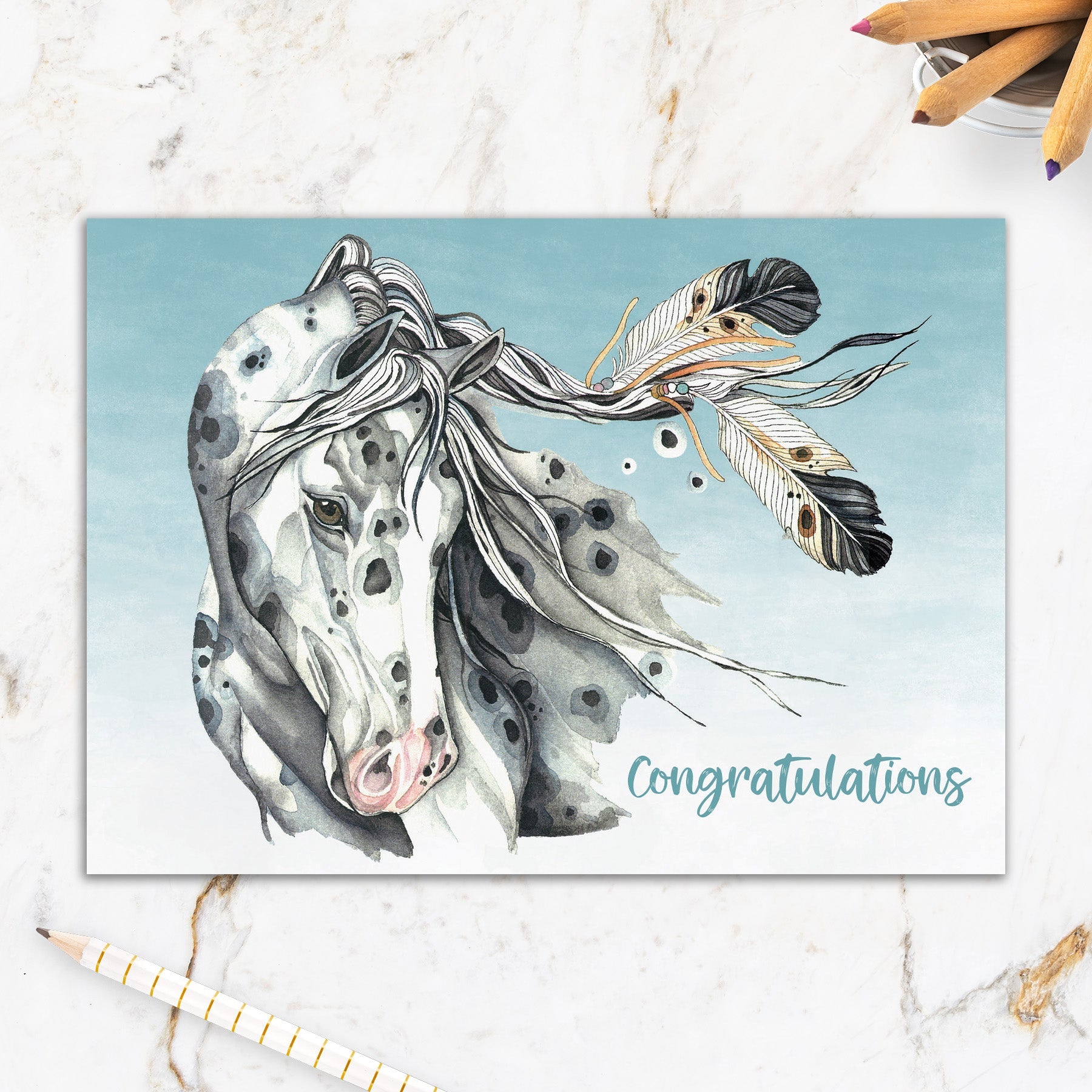 This greeting card measures 5" x 7" and comes with a coordinating colorful envelope.