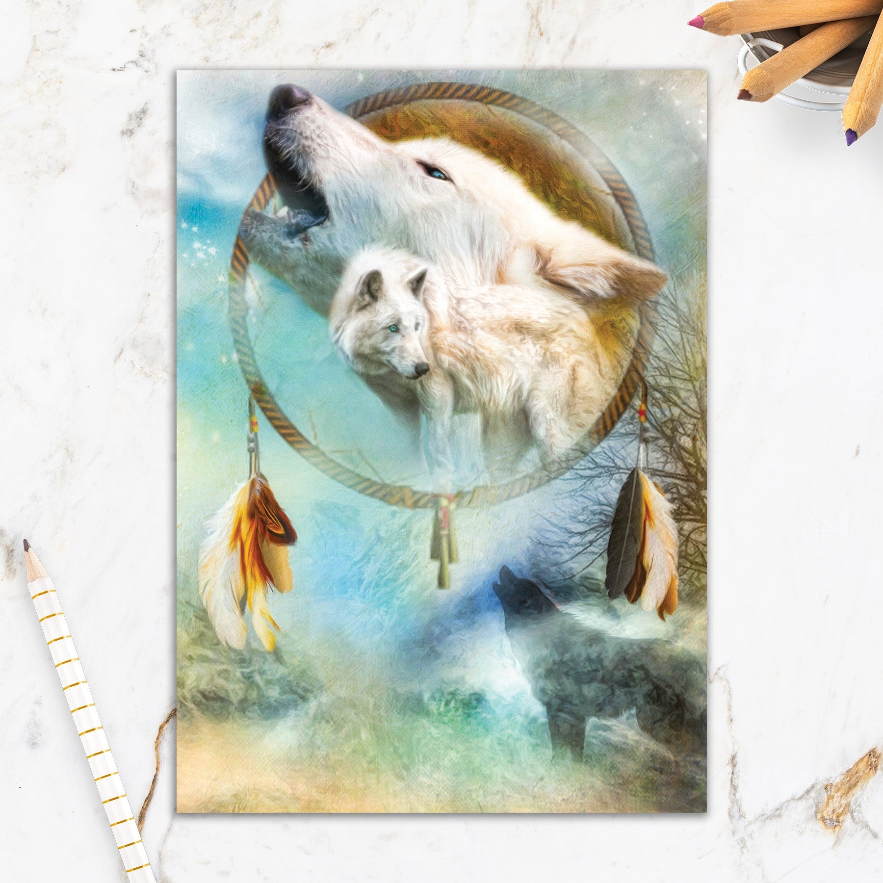 Inside Greeting: I can't help but think of you any time I hear a wolf howl, a breeze blow through leaves, a bird singing as it takes flight. You are ever present in my mind.
