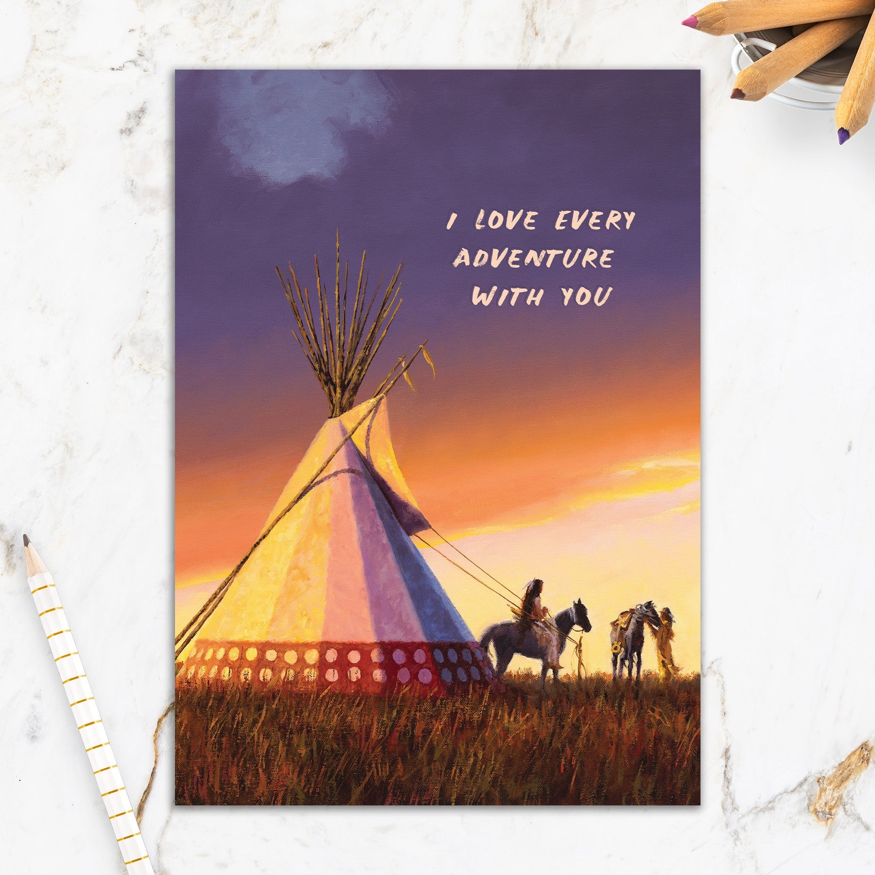 This greeting card measures 5" x 7" and comes with a coordinating colorful envelope.