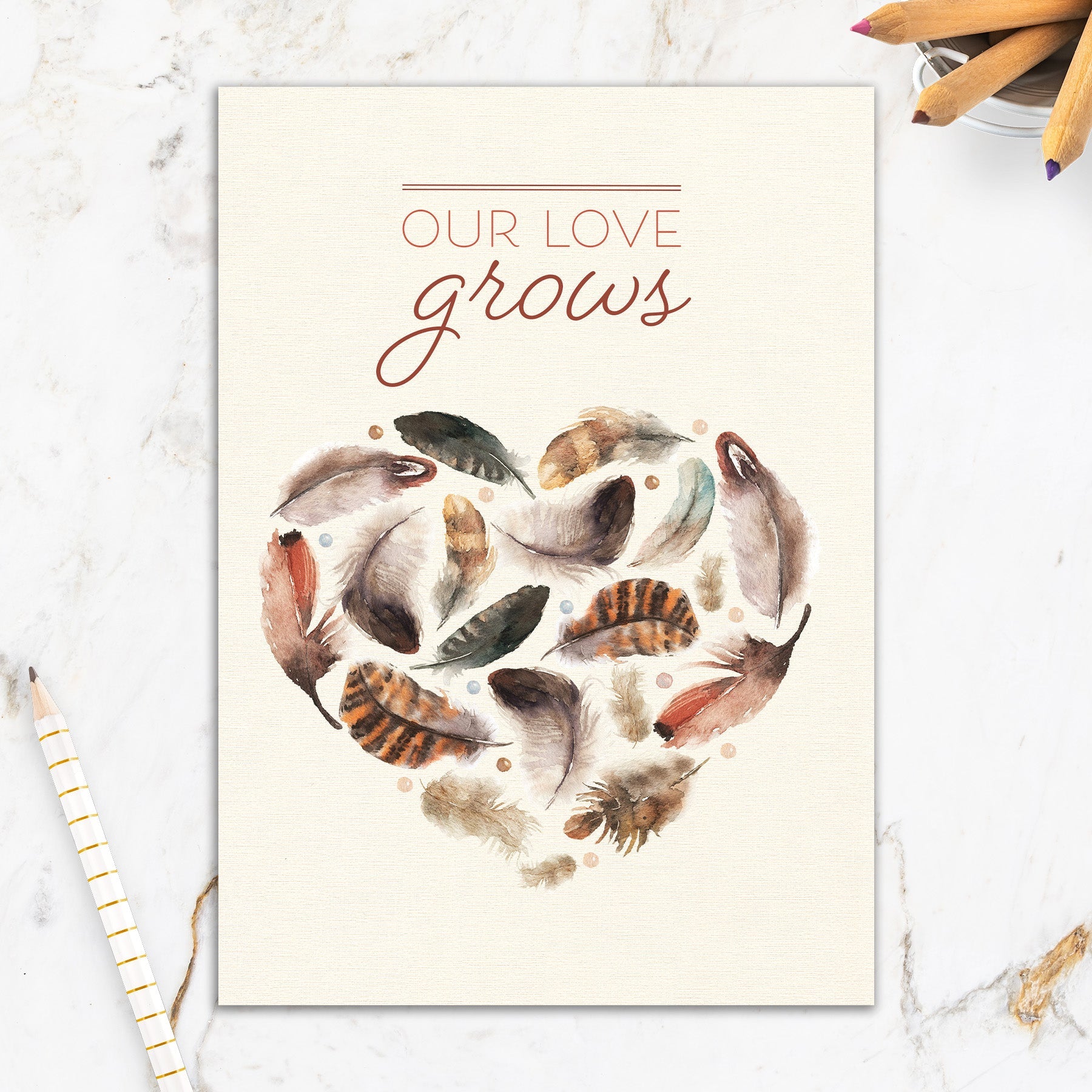 This greeting card measures 5" x 7" and comes with a coordinating colorful envelope.