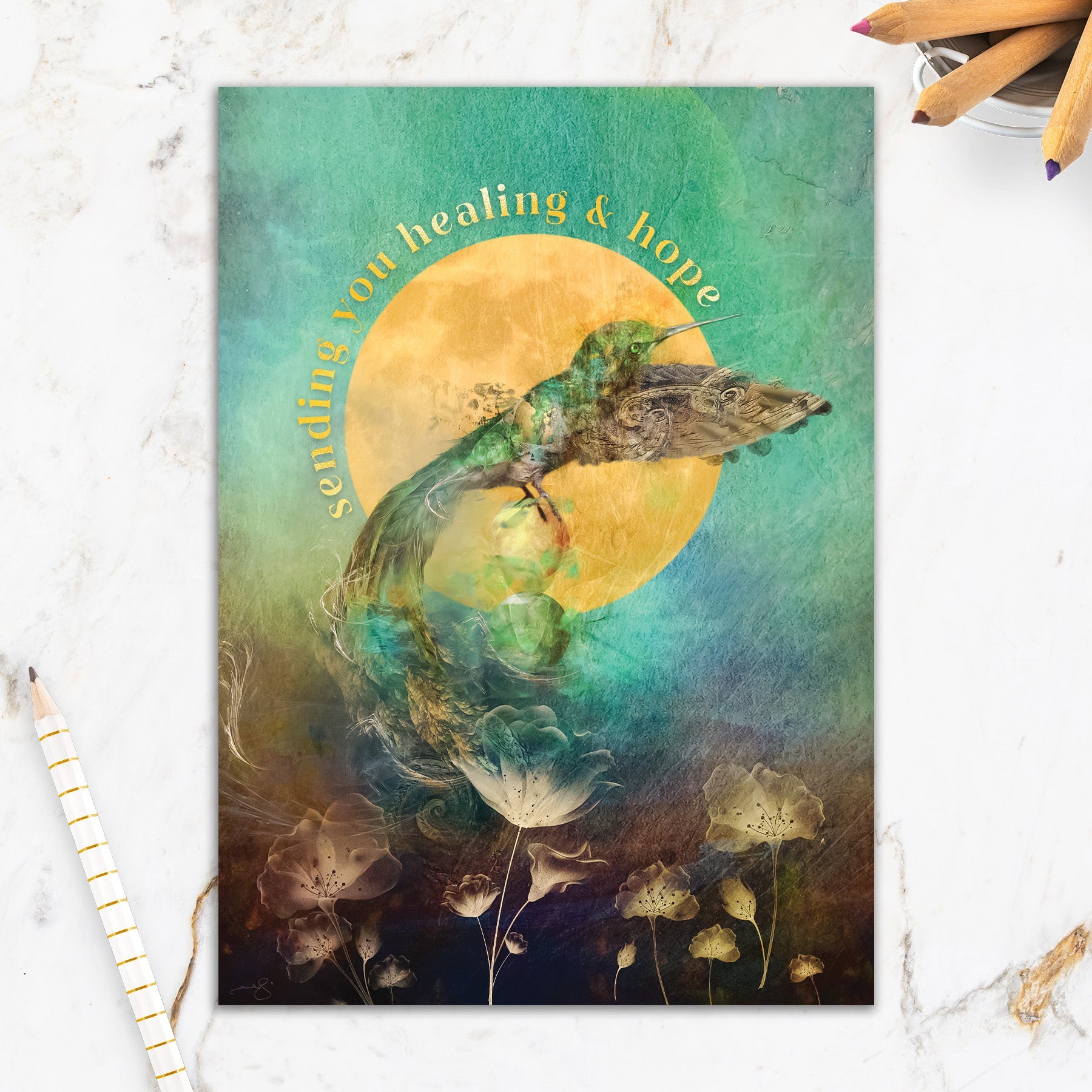 This greeting card measures 5" x 7" and comes with a coordinating colorful envelope.
