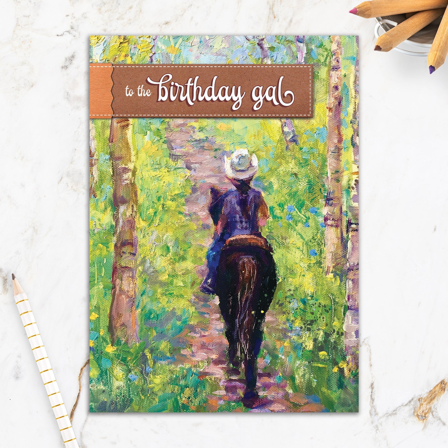 This greeting card measures 5" x 7" and comes with a coordinating colorful envelope.