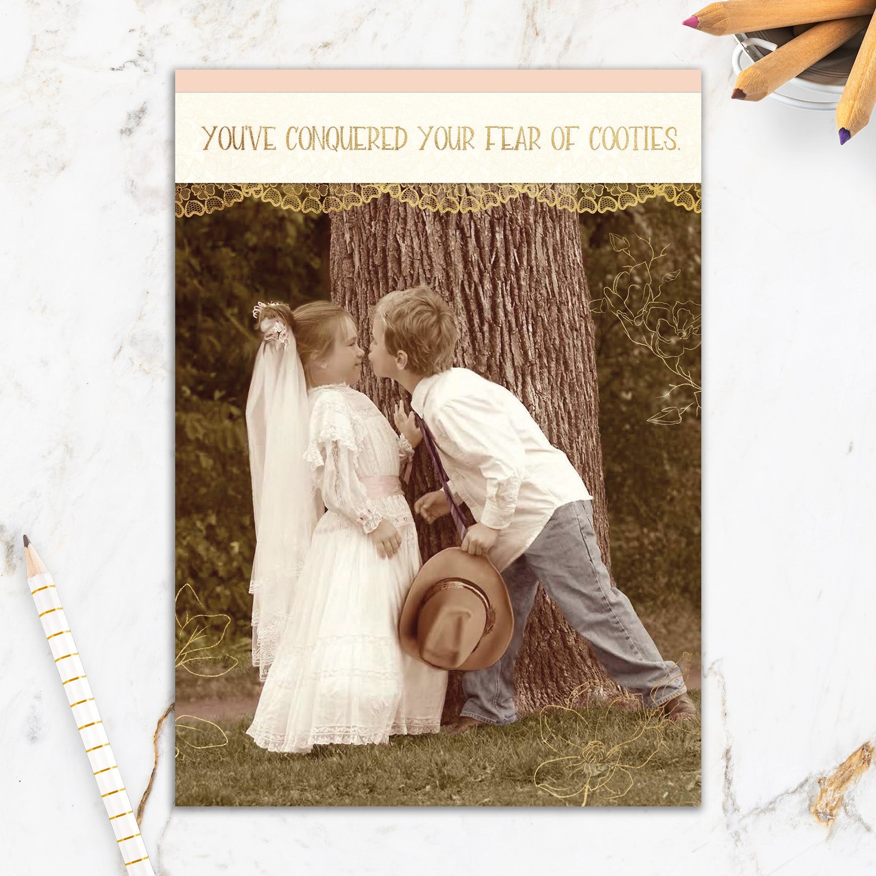 This greeting card measures 5" x 7" and comes with a coordinating colorful envelope.