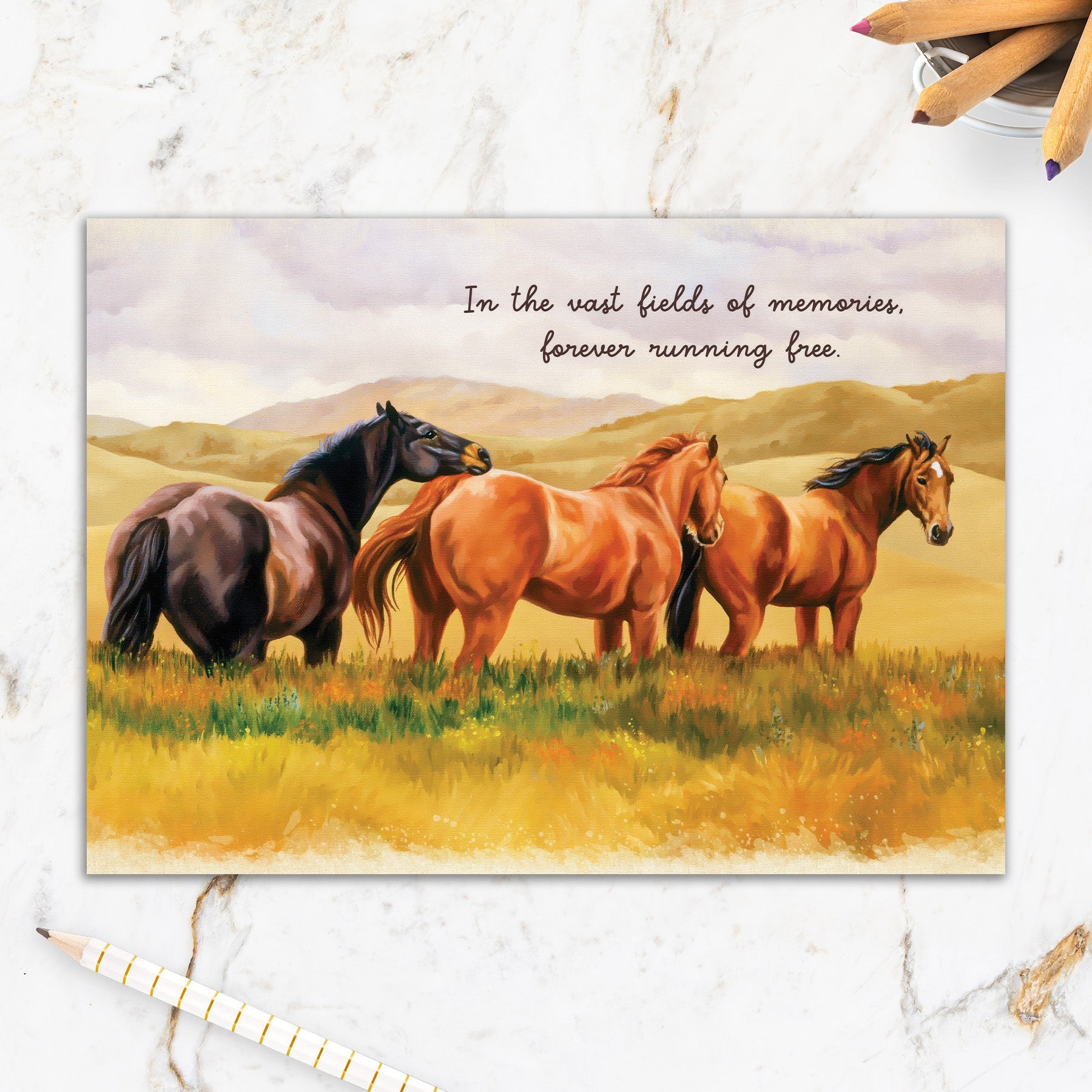 This greeting card measures 5" x 7" and comes with a coordinating colorful envelope.