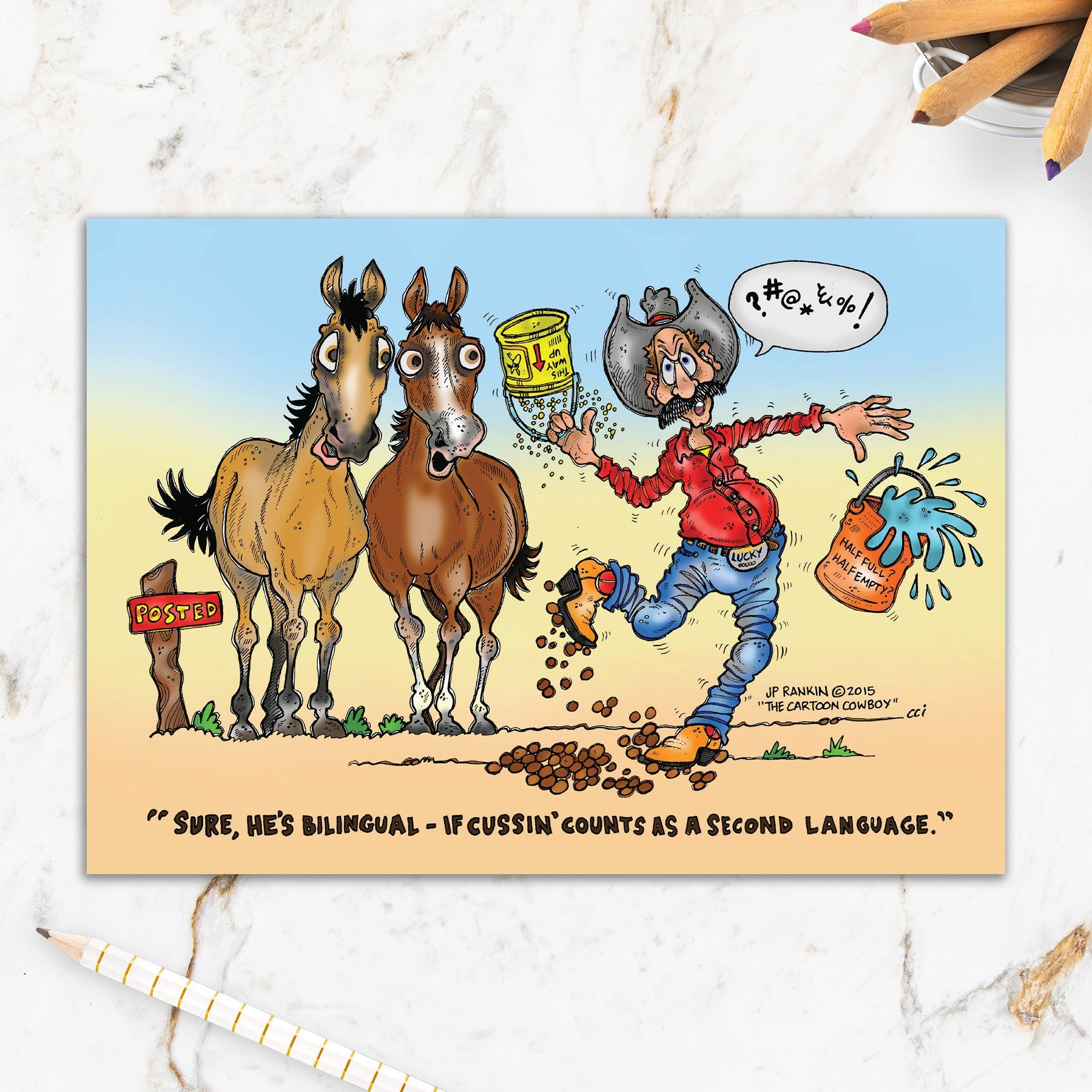 This greeting card measures 5" x 7" and comes with a coordinating colorful envelope.