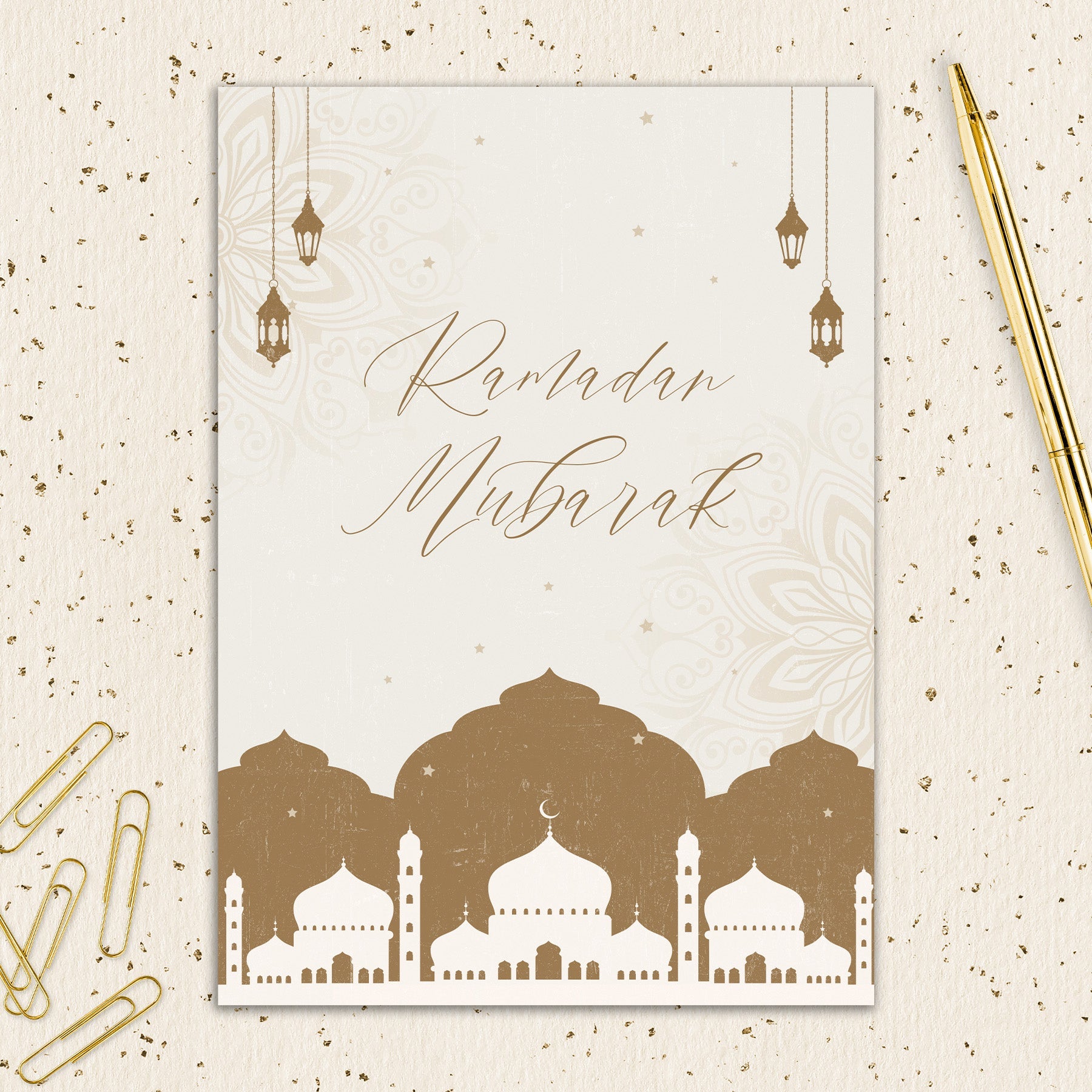 Inside Greeting: May the blessings of Ramadan fill your heart with peace and your home with joy. Wishing you a month of reflection, kindness, and togetherness.