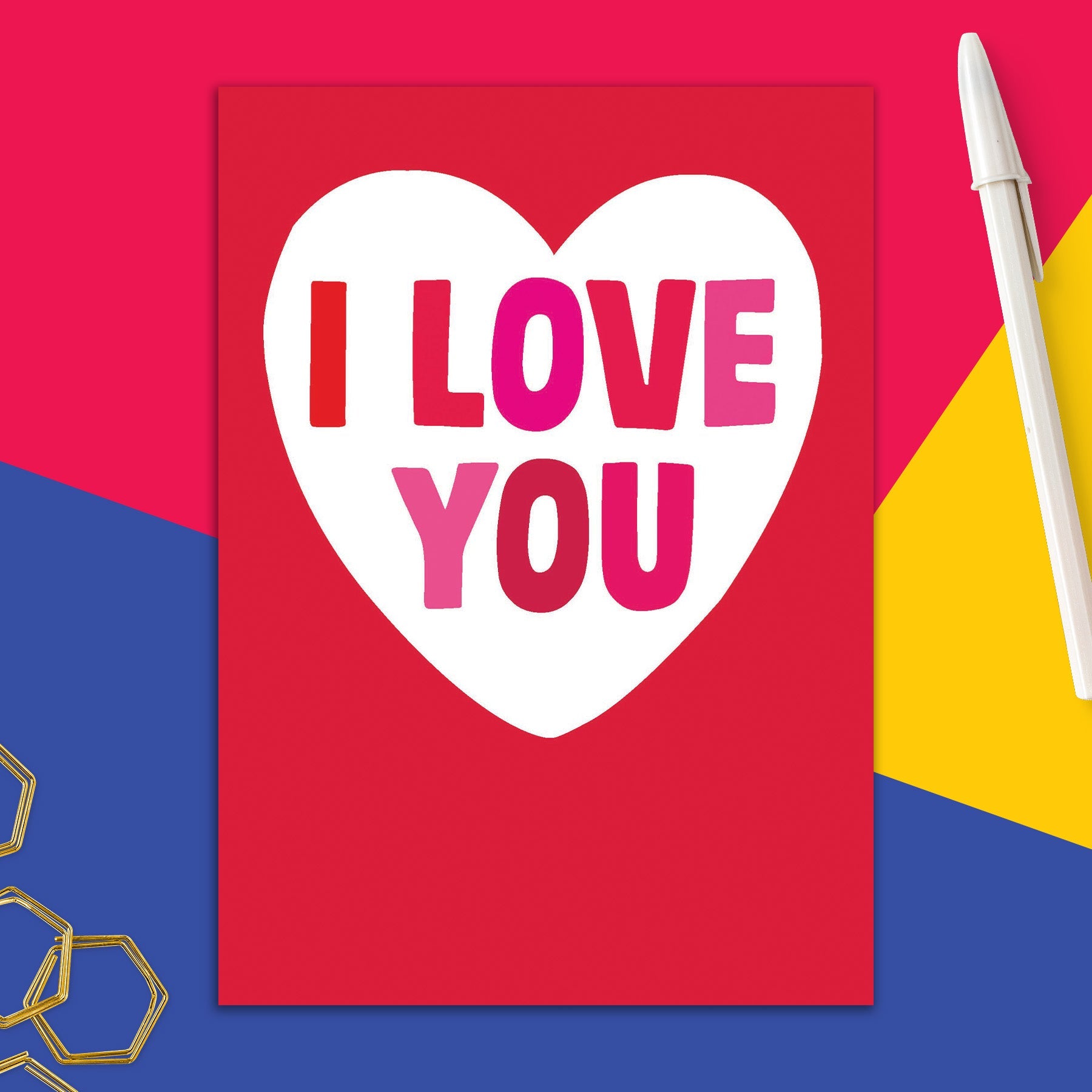 This greeting card measures 5" x 7" and comes with a coordinating colorful envelope.