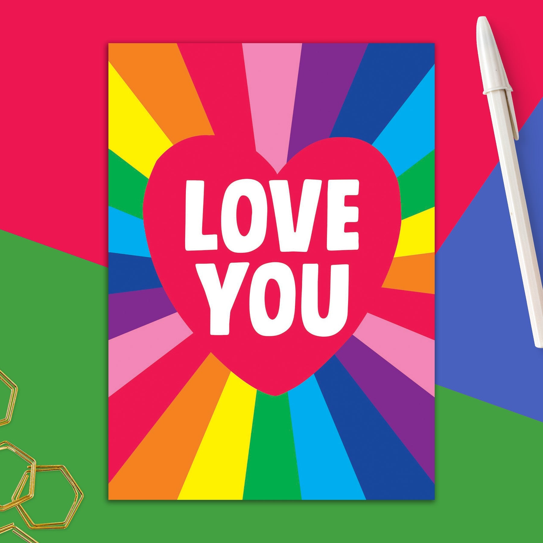 This greeting card measures 5" x 7" and comes with a coordinating colorful envelope.