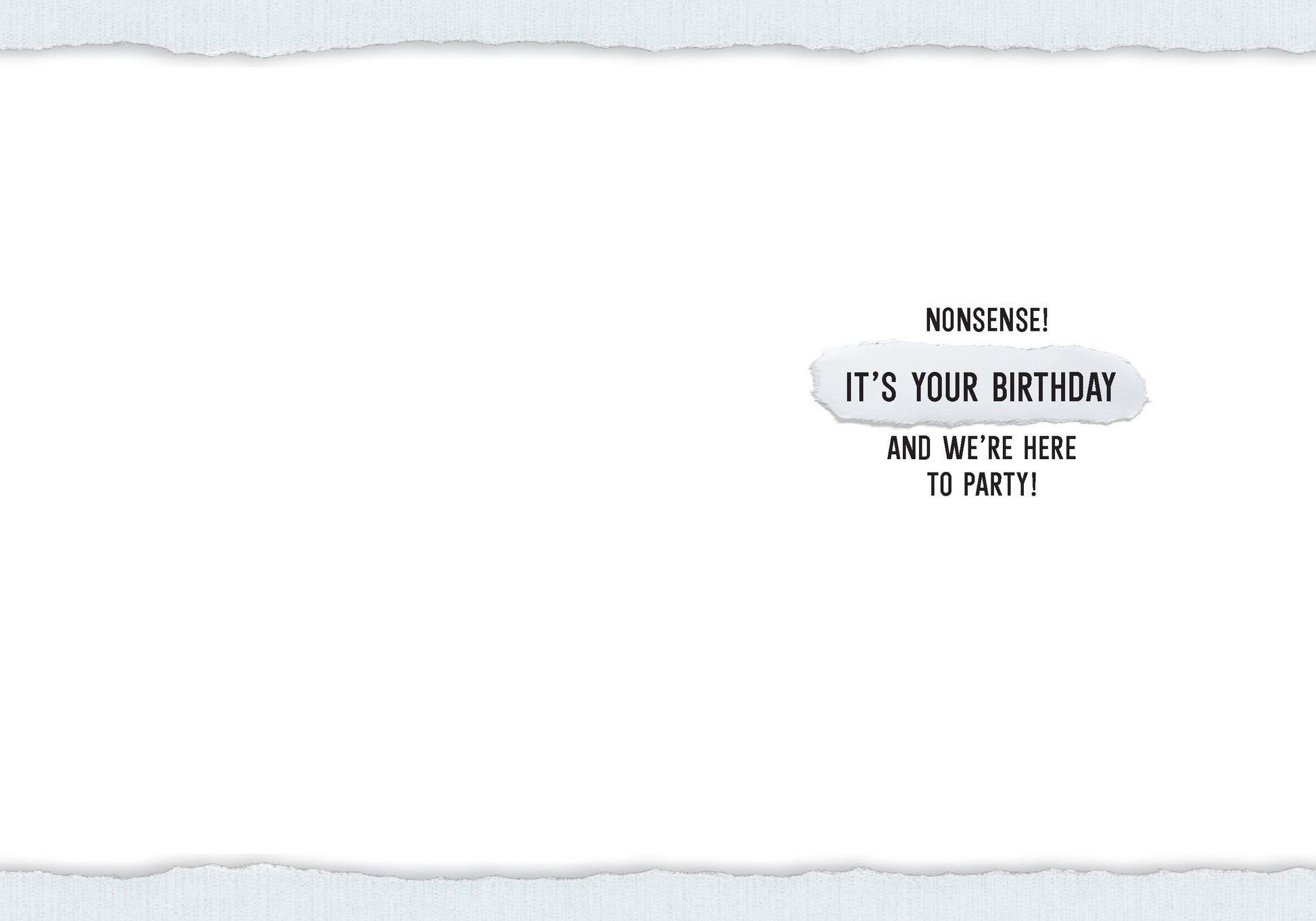 Inside Greeting: Nonsense! It's your birthday and we're here to party!
