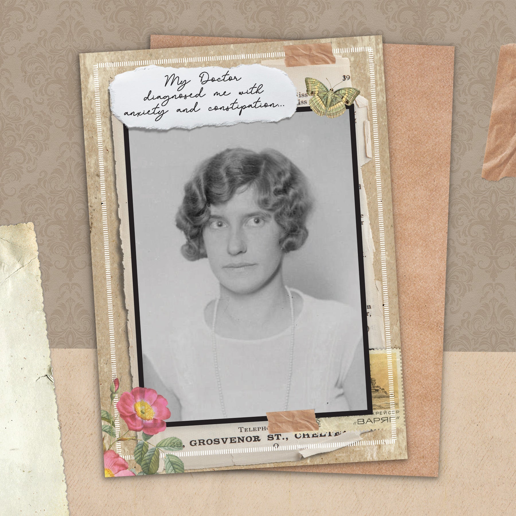 This greeting card measures 5" x 7" and comes with a coordinating Kraft envelope.
