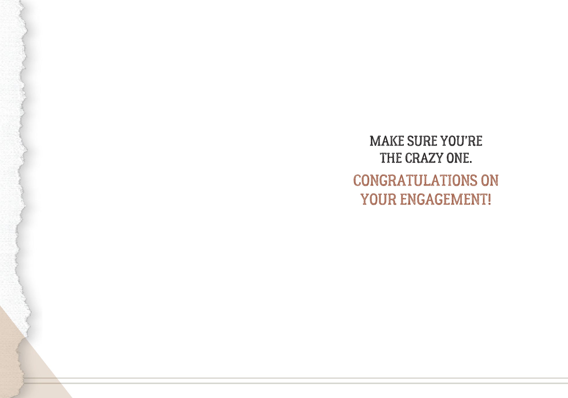 Inside Greeting: Make sure you're the crazy one. Congratulations on your engagement!