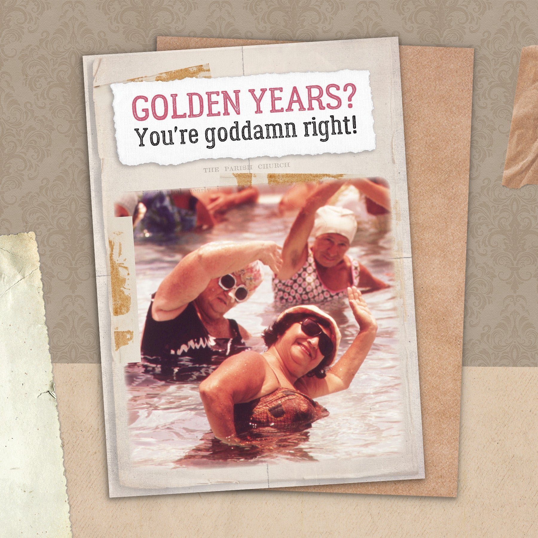 This greeting card measures 5" x 7" and comes with a coordinating Kraft envelope.