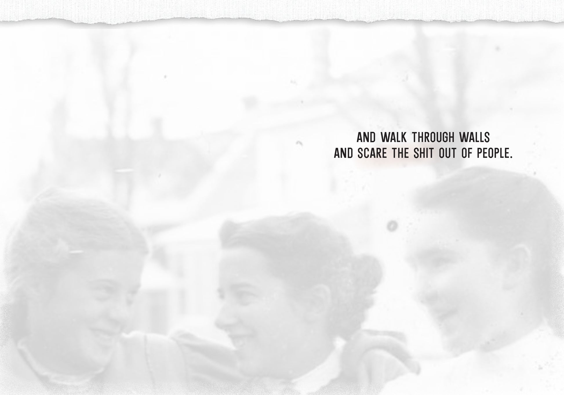 Inside Greeting: And walk through walls and scare the shit out of people.