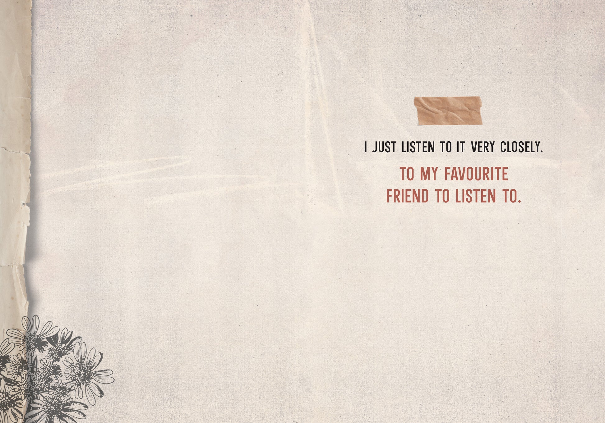 Inside Greeting: I just listen to it very closely. To my favourite friend to listen to.