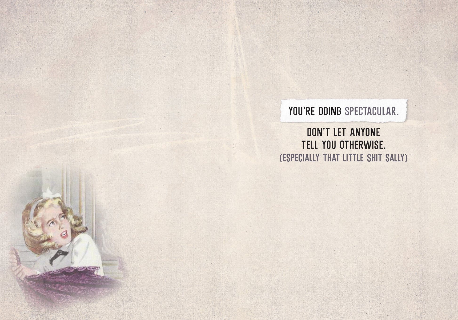 Inside Greeting: You're doing spectacular. Don't let anyone tell you otherwise. (Especially that little shit Sally)