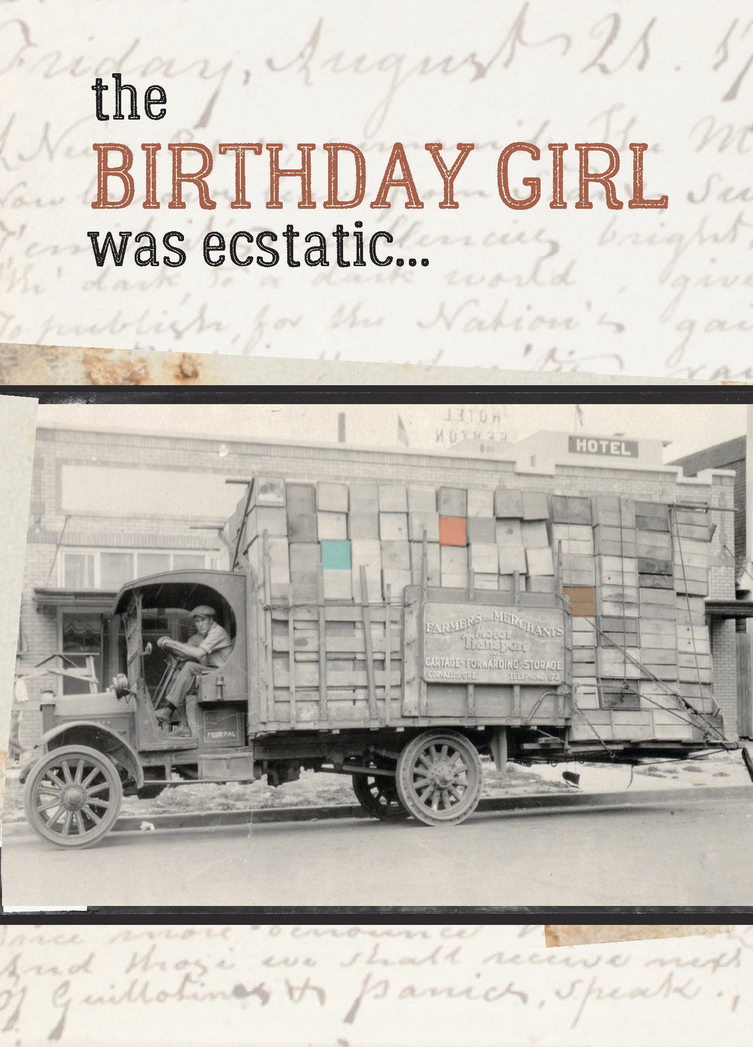Inside Greeting: Her daily Amazon order had arrived. Happy Birthday!