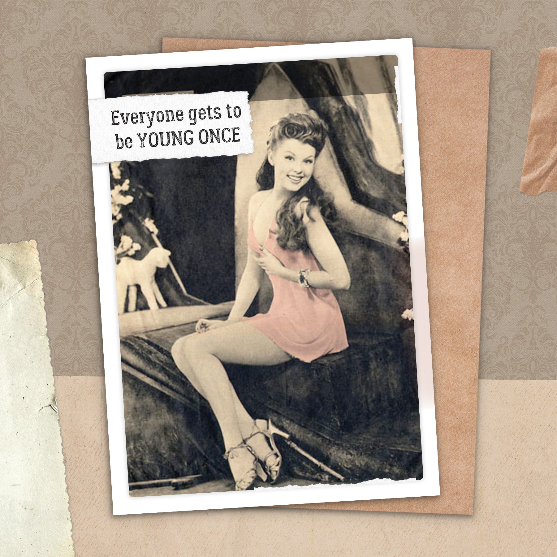 This greeting card measures 5" x 7" and comes with a coordinating Kraft envelope.