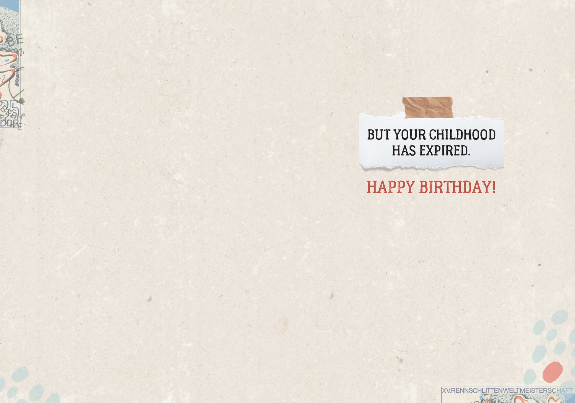 Inside Greeting: But your childhood has expired. Happy Birthday!