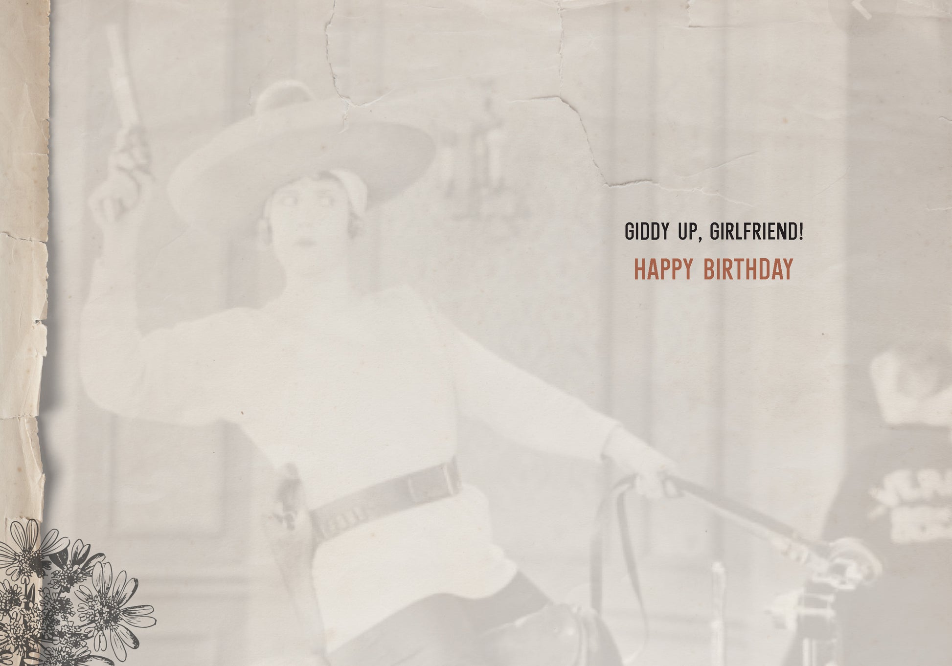 Inside Greeting: Giddy up, girlfriend! Happy Birthday.