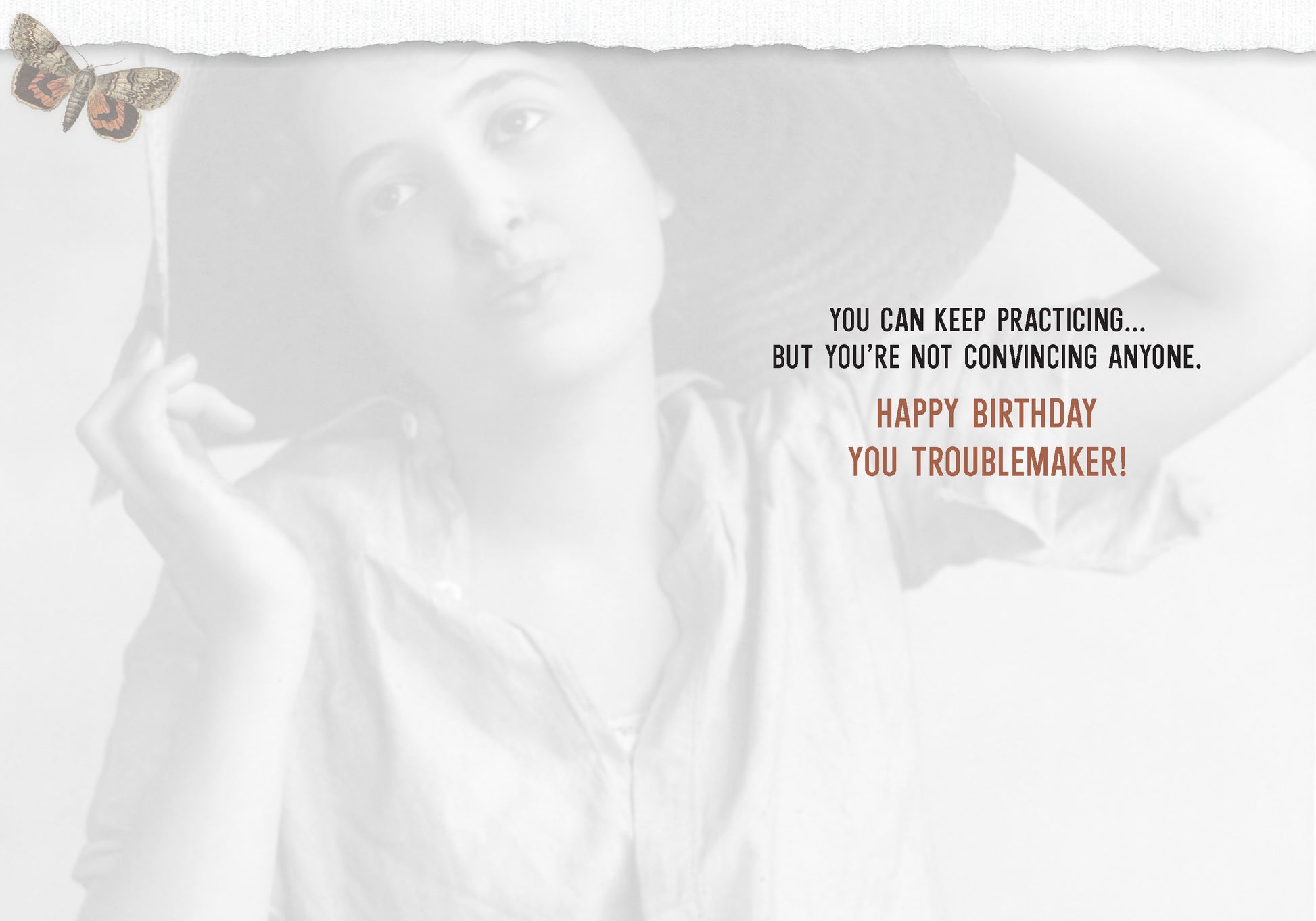 Inside Greeting: You can keep practicingã but you're not convincing anyone. Happy Birthday you troublemaker!