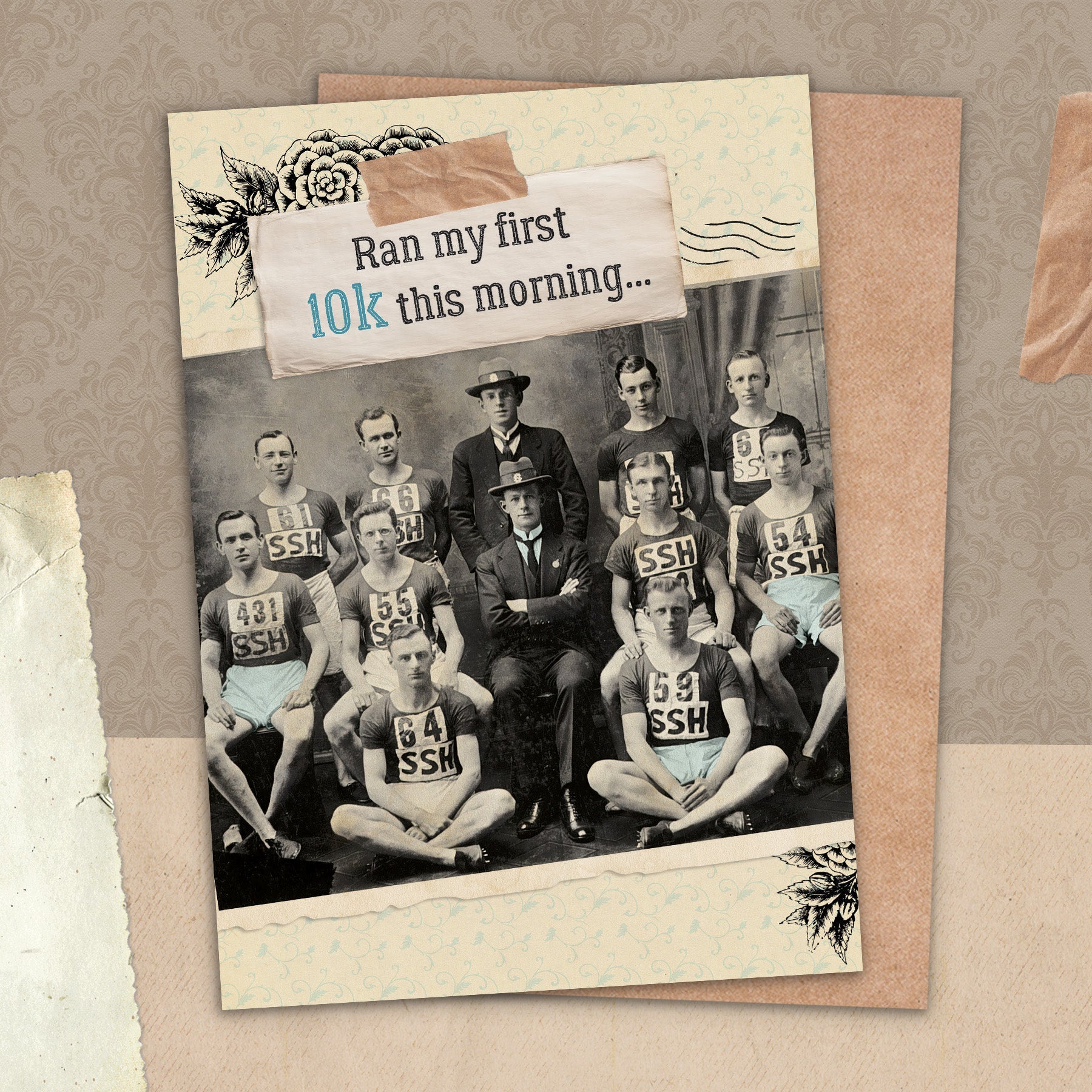 This greeting card measures 5" x 7" and comes with a coordinating Kraft envelope.