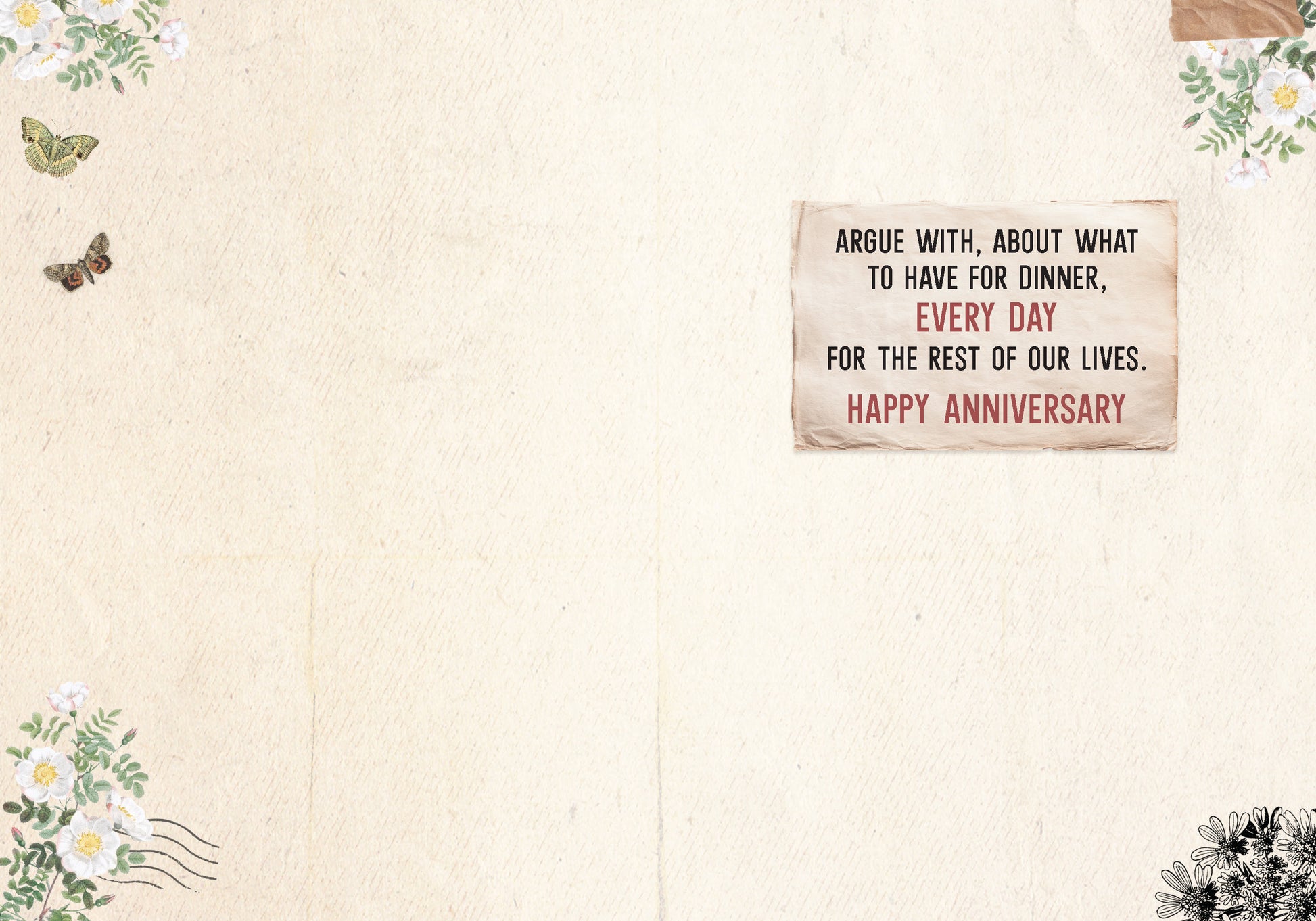 Inside Greeting: decide what to have for dinner with, every day for the rest of our lives. Happy Anniversary.