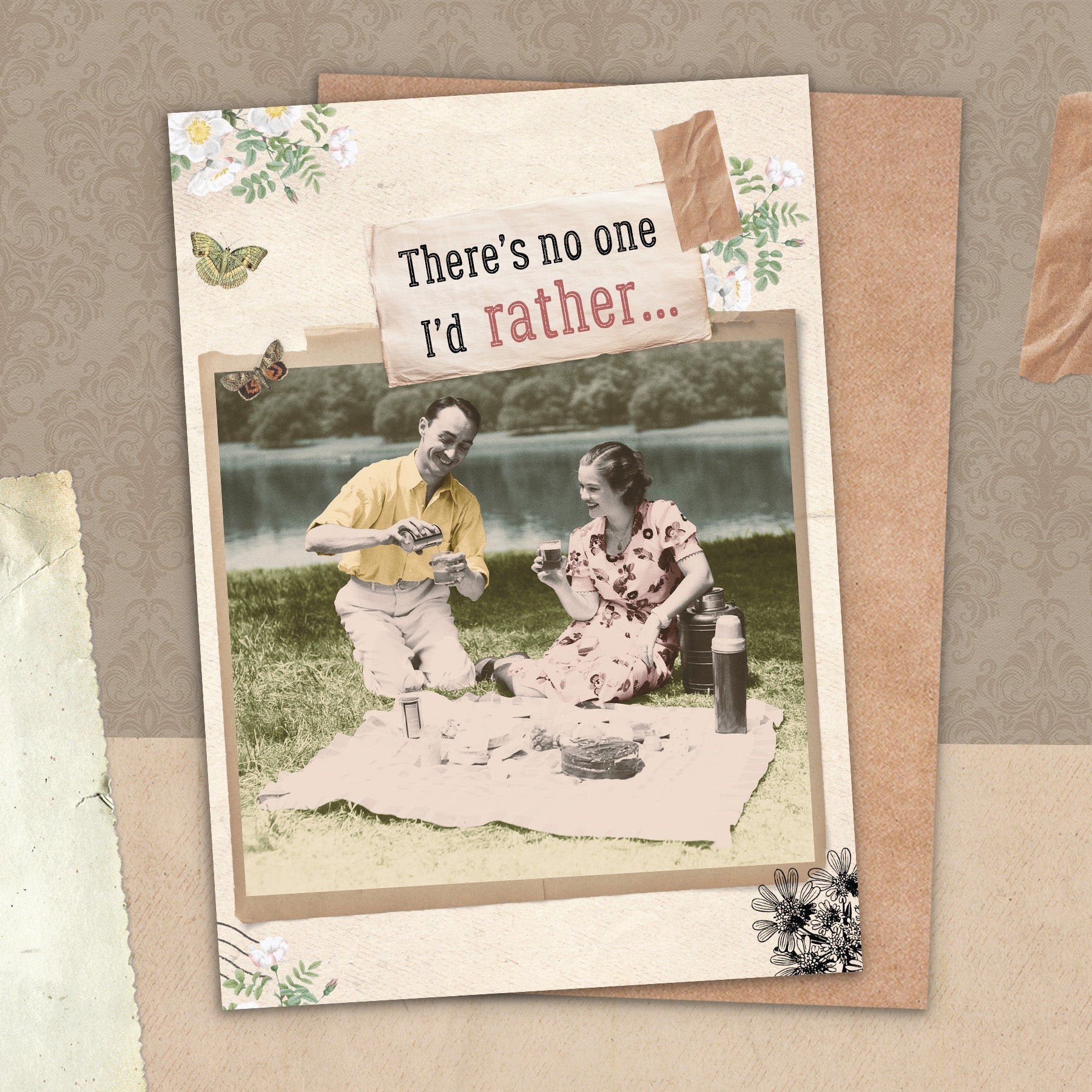 This greeting card measures 5" x 7" and comes with a coordinating Kraft envelope.