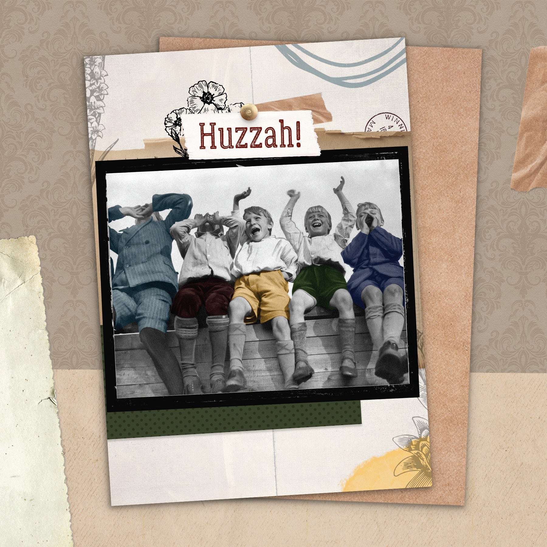This greeting card measures 5" x 7" and comes with a coordinating Kraft envelope.