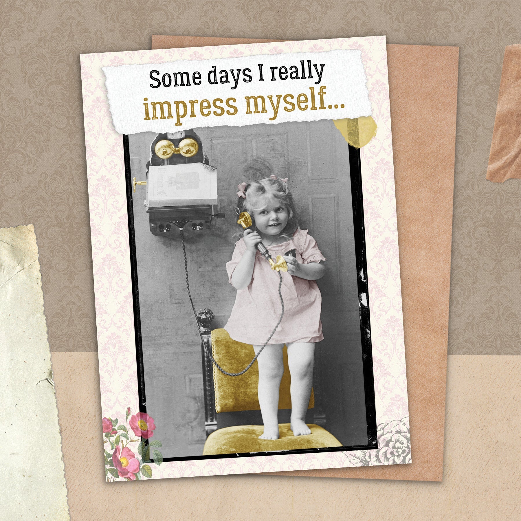 This greeting card measures 5" x 7" and comes with a coordinating Kraft envelope.