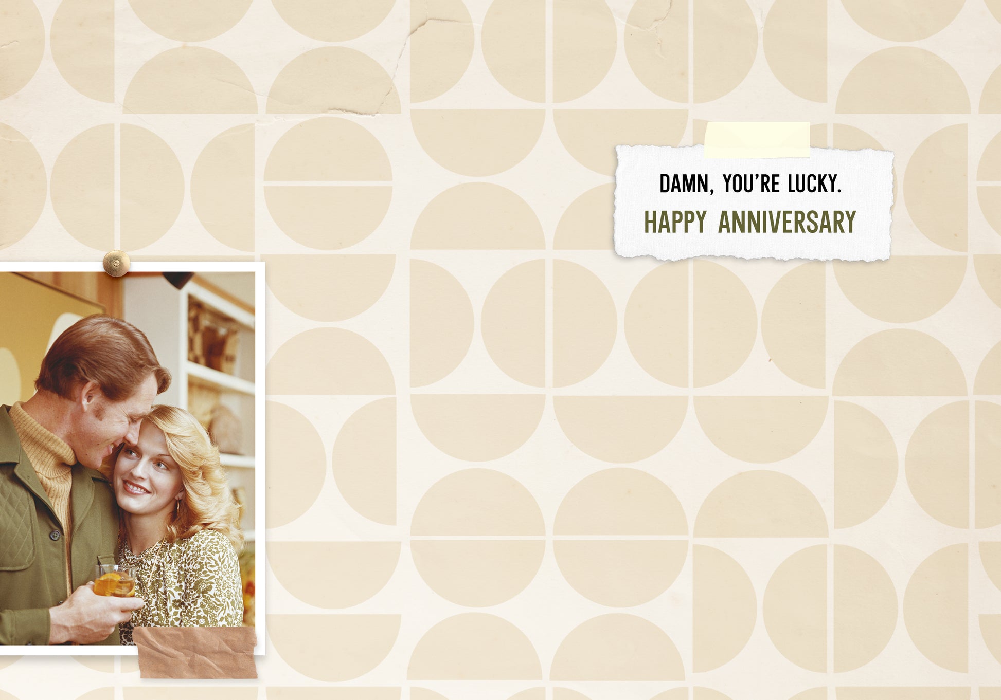 Inside Greeting: damn, you're lucky. Happy Anniversary.