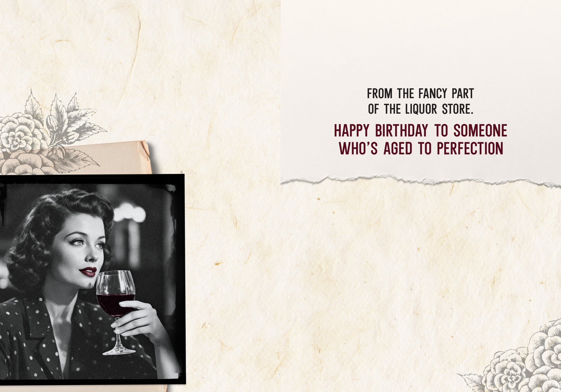 Inside Greeting: from the fancy part of the liquor store. Happy birthdday to someone who's aged to perfection.