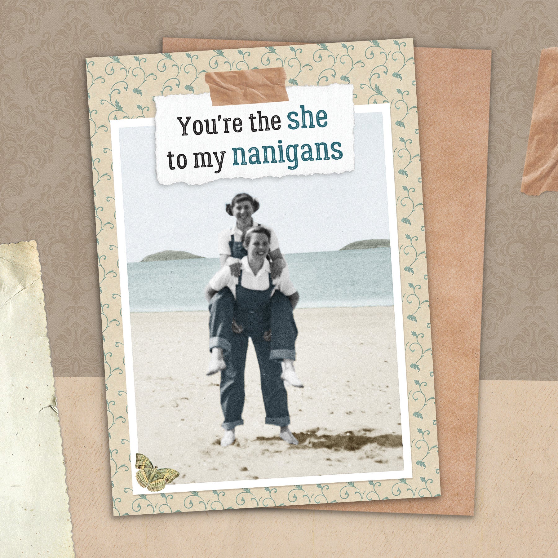 This greeting card measures 5" x 7" and comes with a coordinating Kraft envelope.