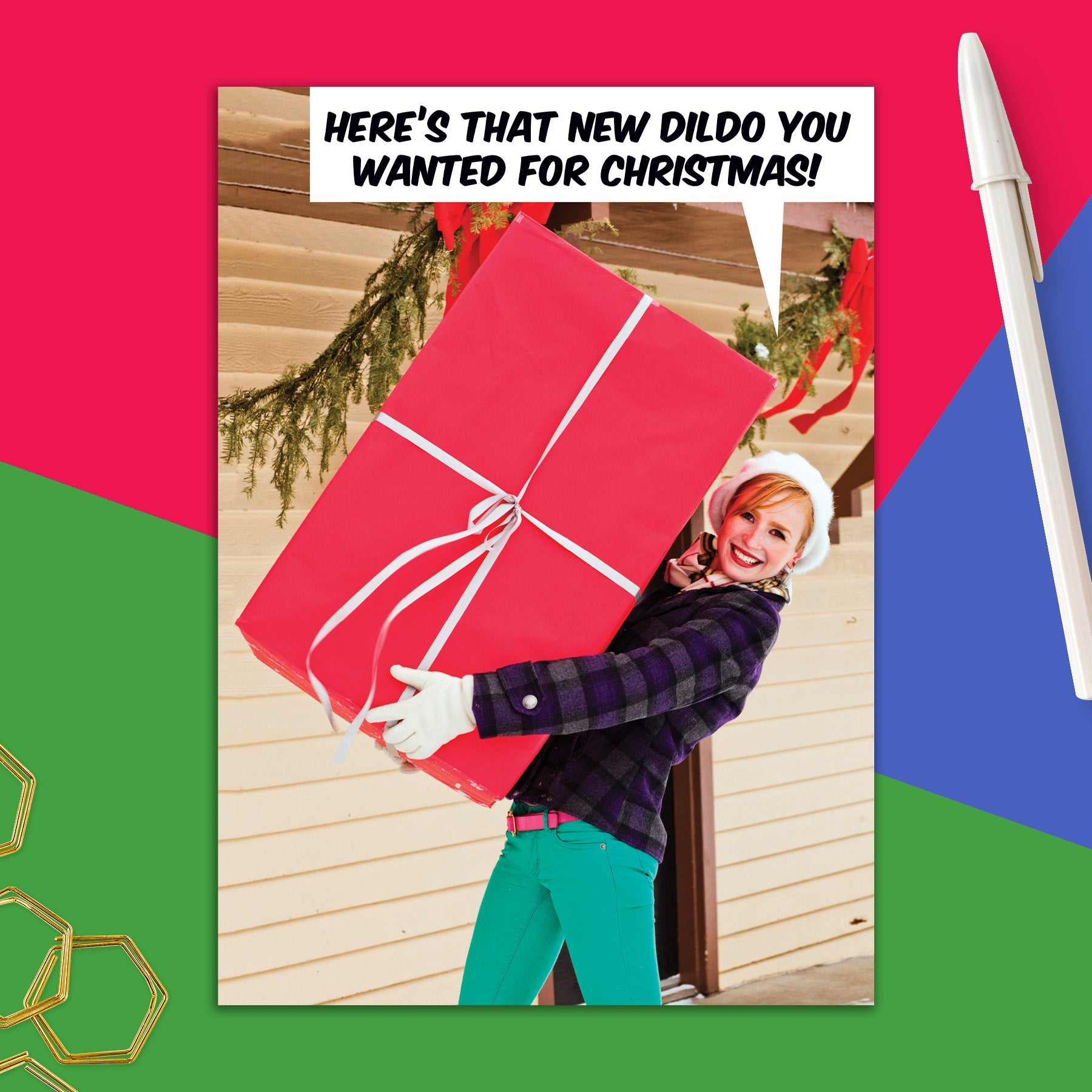 This greeting card measures 5" x 7" and comes with a coordinating colorful envelope.