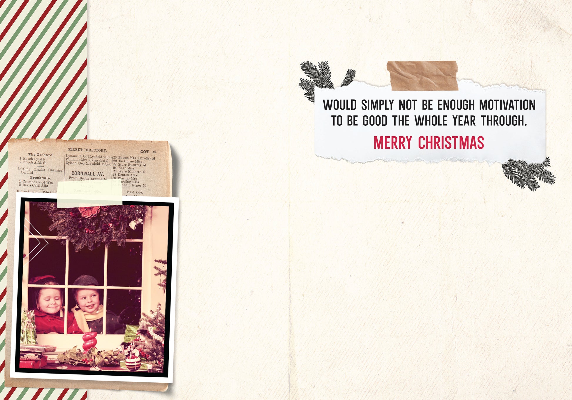 Inside Greeting: would simply not be enough motivation to be good the whole year through. Merry Christmas.